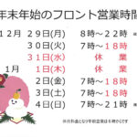 12月 30日(月) 7時~18時 31日(火) 7時~18時 1月 1日(水) 休業 …